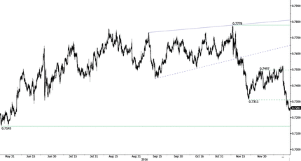 El GBP/USD opera por debajo del anterior canal de tendencia alcista. Un sólido soporte se puede encontrar en 1.2302 (mínimo 18/11/2016) mientras que una resistencia se encuentra en 1.2509 (máximo 16/12/2016). La estructura técnica sugiere una mayor debilidad hacia el soporte en 1.2302. El patrón técnico a largo plazo es aún más negativo desde la votación Brexit que ha allanado el camino para un mayor declive. El soporte a largo plazo que se localiza en 1.0520 (01/03/85) representa un objetivo decente. Una resistencia a largo plazo se ubica en 1.5018 (24/06/2015) e indicaría una reversión a largo plazo en la tendencia negativa. Sin embargo, es muy poco probable que suceda en este momento.